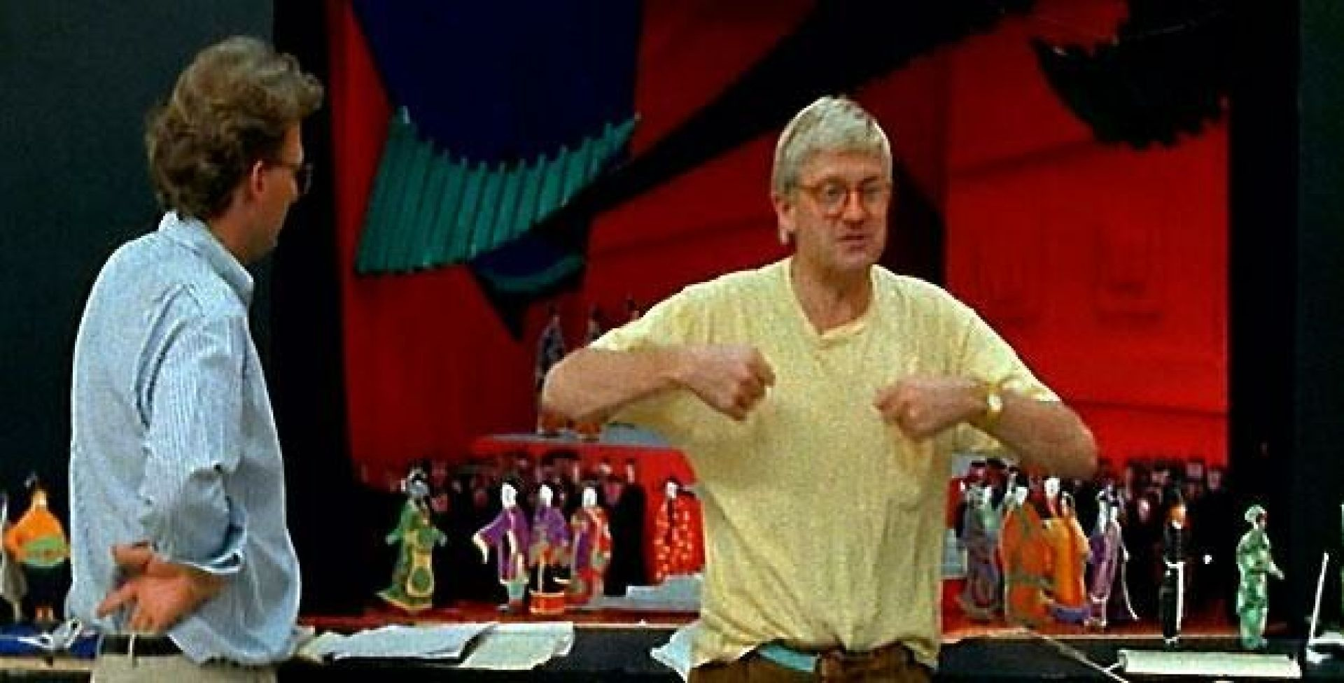 David Hockney – vienas žymiausių britų menininkų, išgarsėjęs dar 7-ajame dešimtmetyje kaip pop-meno krypties atstovas. Nuo tapybos iki fotografijos, koliažų ir skaitmeninio meno – Hockney savo kūrybinėje praktikoje yra išbandęs bemaž viską. Mažiau žinoma – jo didelė aistra muzikai, kuri ypatingai atsiskleidžia jam dirbant teatre kaip operos kostiumų ir scenografijų dailininku. Šis filmas – tai intymus Hockney portretas, atskleidžiantis jį kaip talentingą ir vizionierišką scenografą. N-13